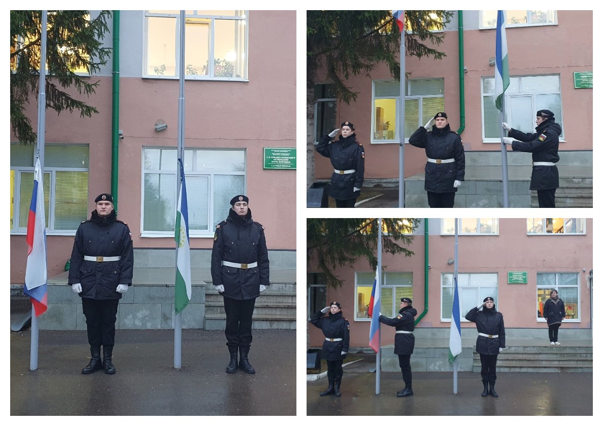 | В Октябрьском нефтяном колледже рабочая неделя традиционно начинается с торжественной церемонии поднятия государственного флага Российской Федерации и флага Республики Башкортостан. Церемония символизирует уважение к государственным символам, патриотизм и единство студентов и сотрудников колледжа. Поднятие флагов сопровождается исполнением гимнов и официальными приветствиями, что помогает настроиться на продуктивную и успешную учебную и рабочую неделю. |