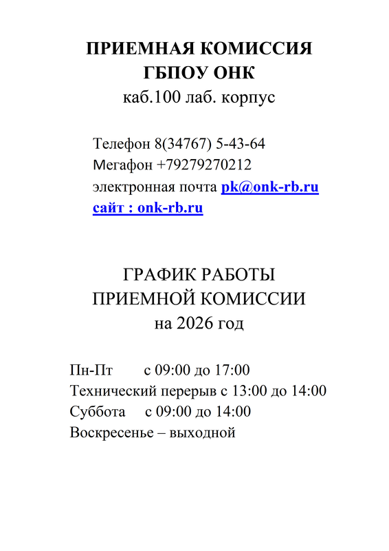 Телефон приемной комиссии: 8(34767) 5-43-64