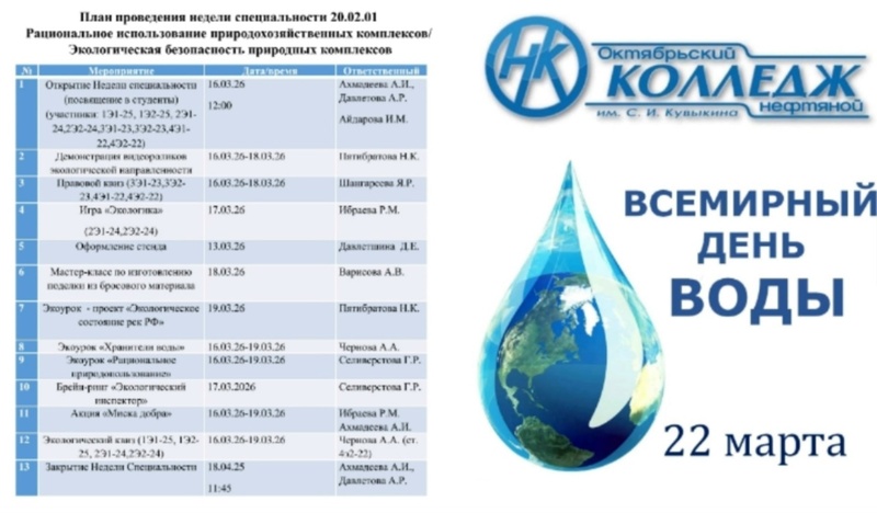 Наша неделя приурочена к важнейшей дате — Всемирному дню воды (22 марта). Вода — это жизнь, а защита водных ресурсов — одна из главных задач современного эколога.