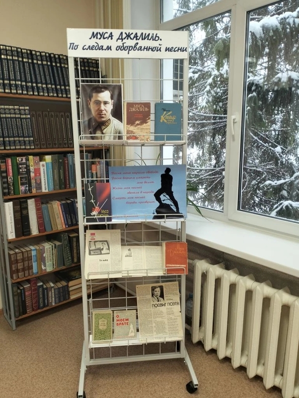 В читальном зале библиотеки оформлена книжно - иллюстративная выставка «По следам оборванной песни», посвященная жизни и творчеству Мусы Джалиля.