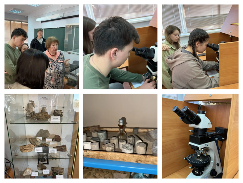 .png) .png) | 31 марта 2026 г. в рамках Недели специальности «Геология и разведка нефтяных и газовых месторождений» преподавателем Цыбульской Татьяной Васильевной и лаборантом Гилязовой Эльвирой Хамзиновной для группы Гд9-23 была проведена экскурсия в лабораторию «Методы петрографических и геохимических исследований».