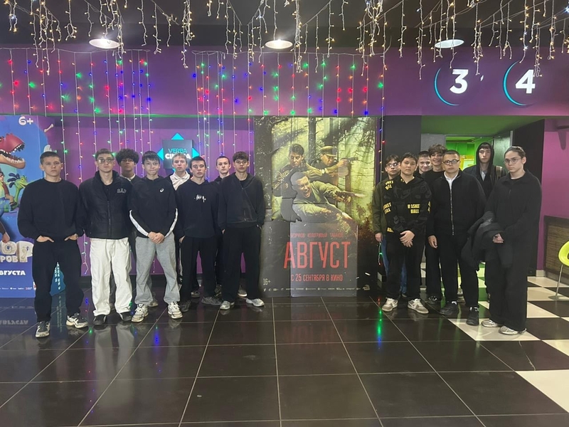 .jpg) .jpg) | 2 октября 2025 года студенты группы ЭЛМ1-24 Октябрьского Нефтяного колледжа организованно посетили кинотеатр, где посмотрели новый российский фильм "Август". Билеты на кинопоказ были приобретены по проекту "Пушкинская карта", что сделало мероприятие еще более доступным. Этот поход стал отличным способом сплотить коллектив, снять напряжение после учебных будней и обсудить важные темы, поднятые в кинокартине. Фильм "Август" рассказывает историю о выборе, дружбе и становлении личности, что особенно близко нашей молодежи. |