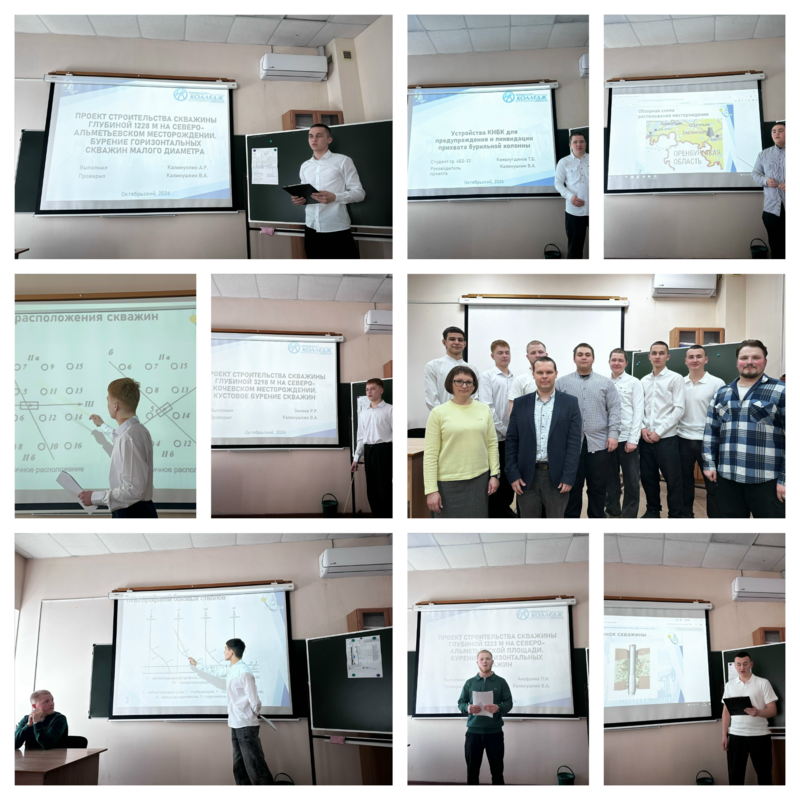 17 марта 2026 года студенты выпускного курса специальности 21.02.02 Бурение нефтяных и газовых скважин приступили к защите курсовых проектов в рамках изучения профессионального модуля ПМ.01 Проведение буровых работ в соответствии с технологическим регламентом.