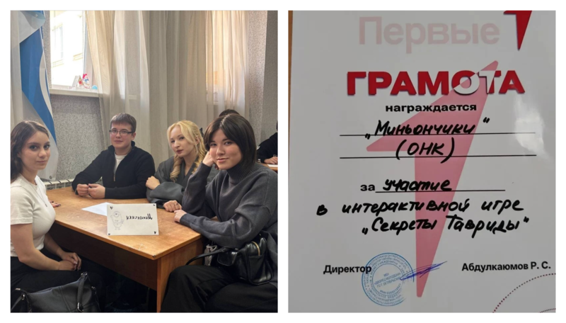 17 марта 2026 года в МБУ Дворец Молодёжи г. Октябрьский был организован интересный Квиз ко Дню воссоединения Республики Крым. В мероприятии приняла участие команда активистов первичного отделения Движения Первых Октябрьского нефтяного колледжа. Блеснули эрудицией: Мавлеева Анна, Сулейманова Аделина, Таирова Елизавета, Муфтеева Виктория и Юсупов Дамир. Поздравляем ребят и желаем творческих успехов!